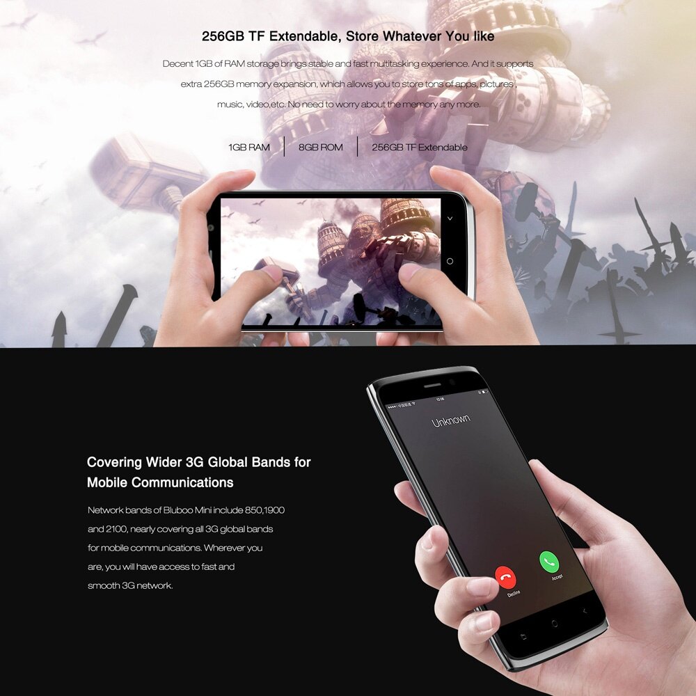 Spesifikasi Bluboo Mini Smartphone 3G Android 6.0 OS 4.5" IPS Screen 1GB+8GB Black