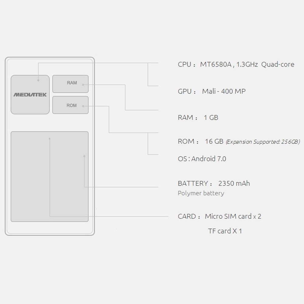 Capacity--1GB RAM + 16GB ROM storage, support TF card up to 256GB extended