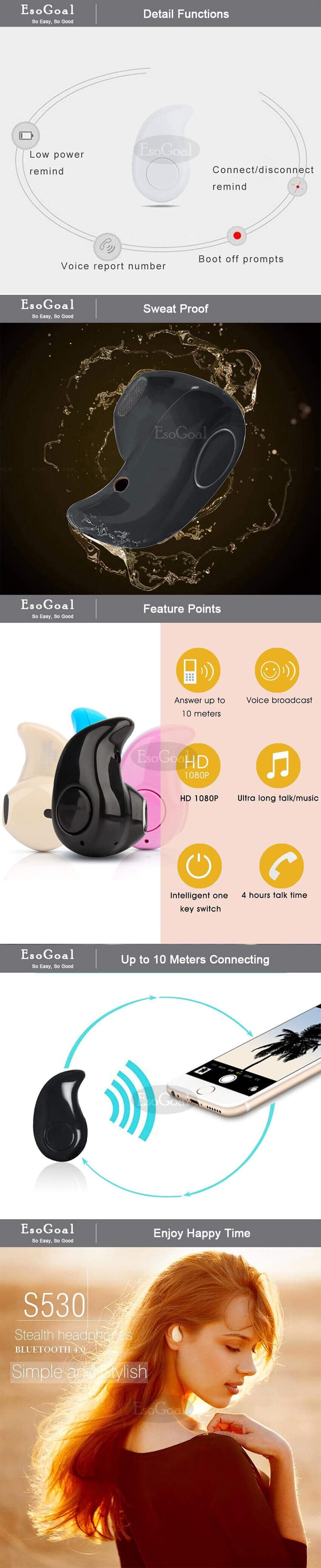 Spesifikasi EsoGoal Mini Bluetooth Headphones Wireless Earbuds in-Ear Earphone Headset with Microphone for iPhone Most Smart Android phones (White)