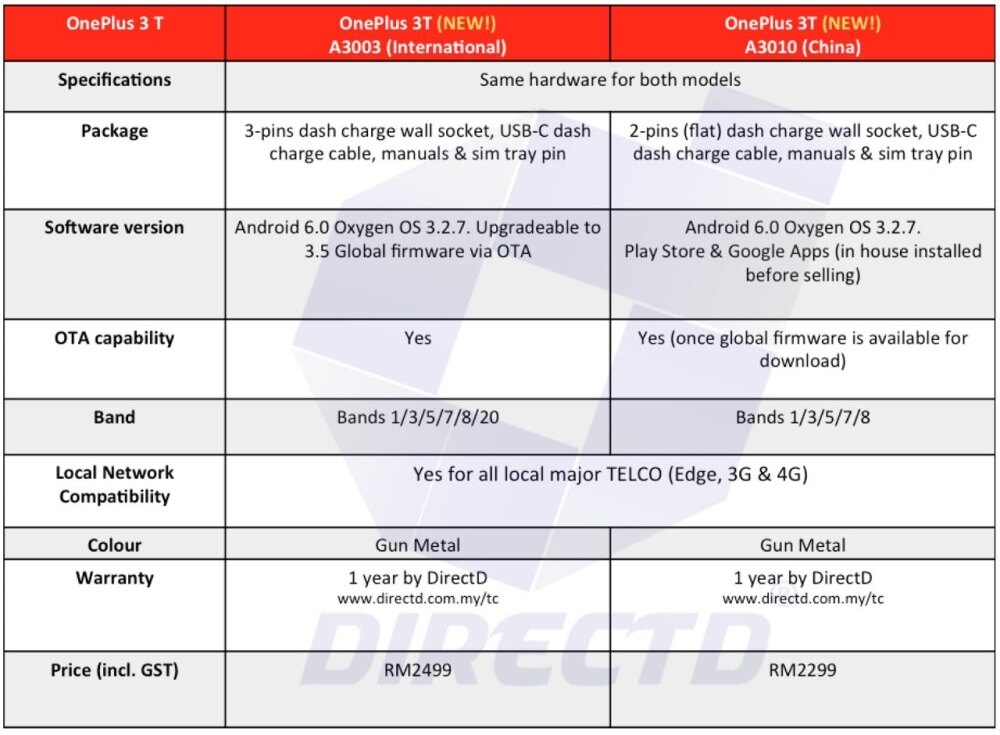 | Model | ONEPLUS 3T |