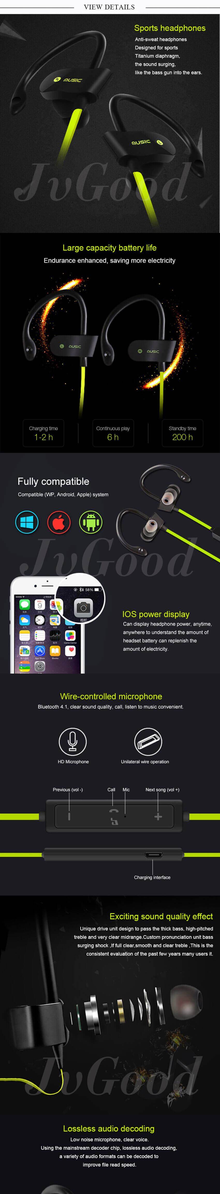 Spesifikasi JvGood Bluetooth Headphones Wireless Sports Earphones w/ Mic HD Stereo Sweatproof Earbuds for Gym Running Workout Noise Cancelling Headsets