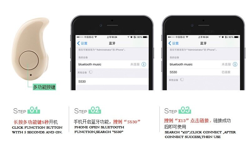Mini Bluetooth Headphones Wireless Earbuds in-Ear Earphone Headset with Microphone for iPhone / Smart Android phones (Black) | Image source: Lazada