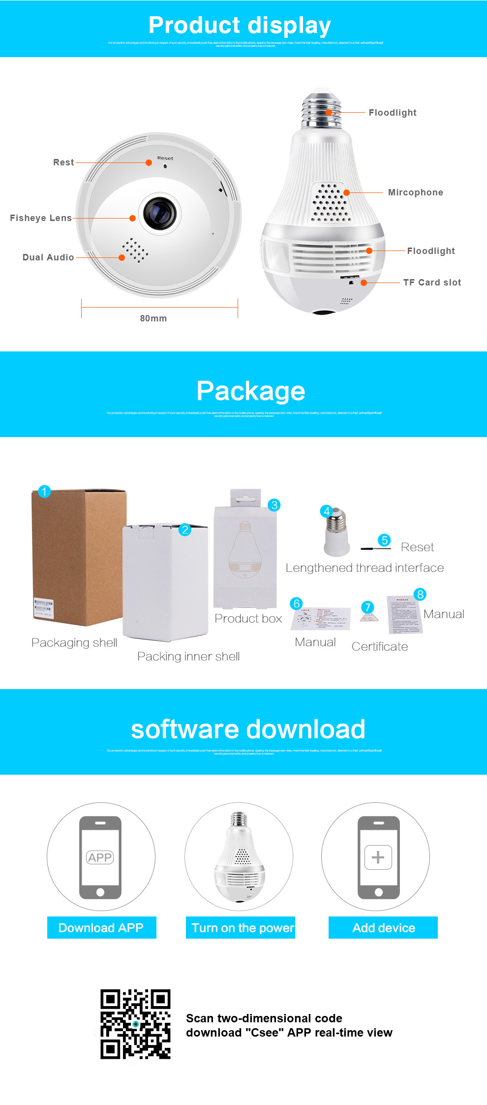 Purchase Notes:if u want this camera,you should ask me questions first. I need to make sure you have E27 bulb connector,if you dont have the E27 bulb connector,you should ask me questions, I can help you configure E27 bulb connector ;if u have it,you can buy directly