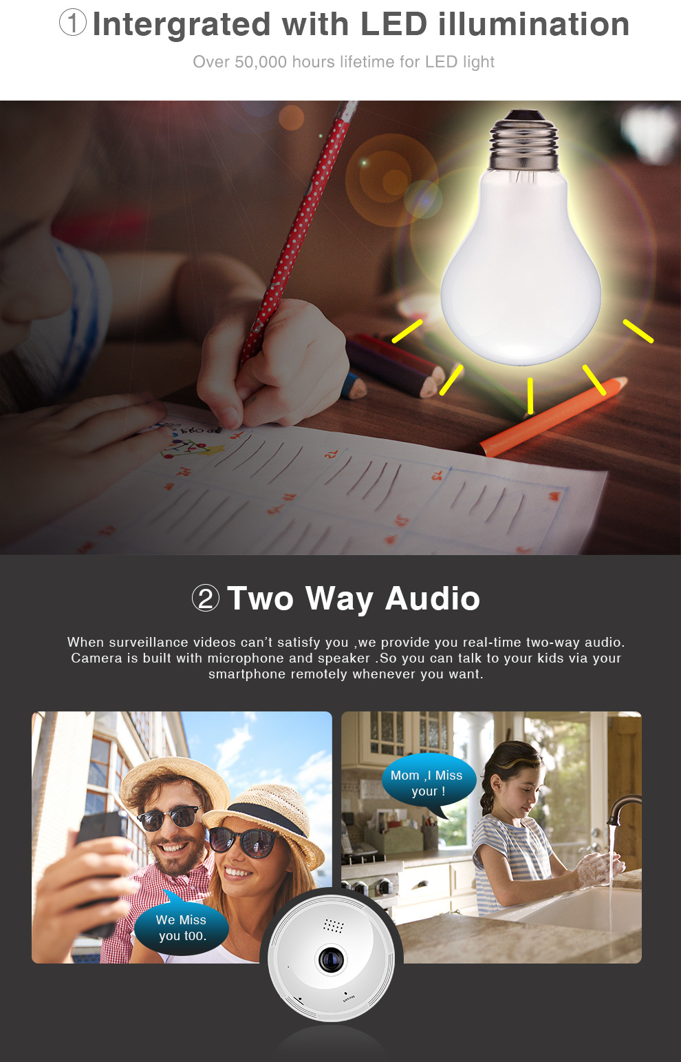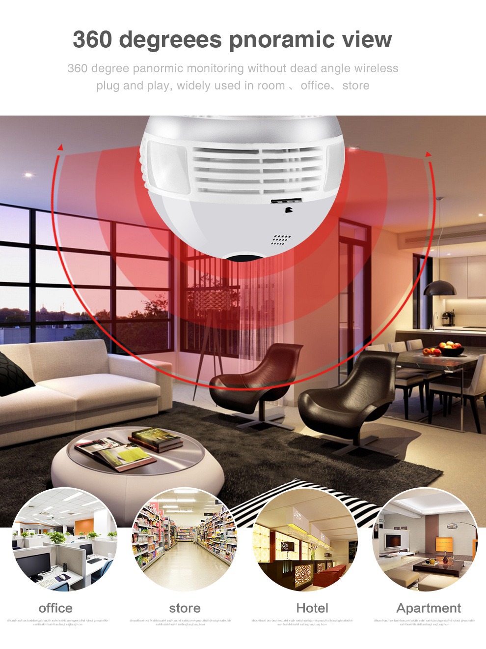Product details of LOOSAFE 960P Panorama CCTV IP Camera 360° Wifi Wireless Night Vision Light Bulb Fisheye Panoramic Surveillance Security CCTV Camera,NO TF Card