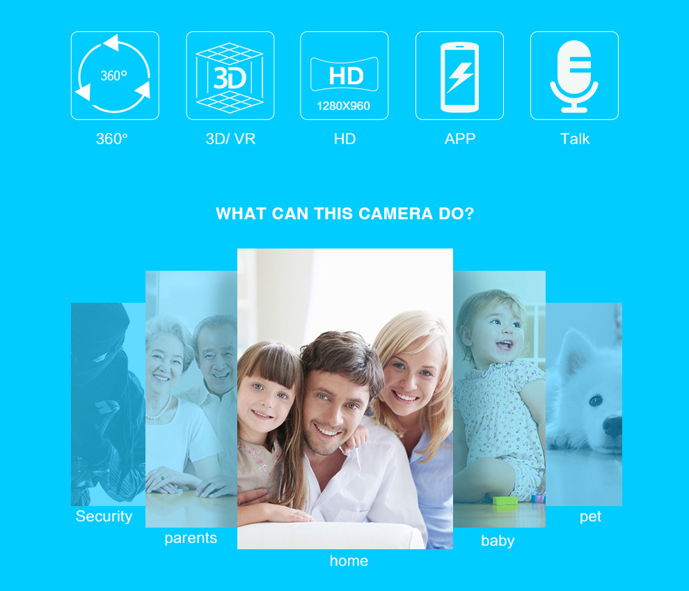 SpesifikasiLOOSAFE 960P Panorama CCTV IP Camera 360° Wifi Wireless Night Vision Light Bulb Fisheye Panoramic Surveillance Security CCTV Camera,NO TF Card